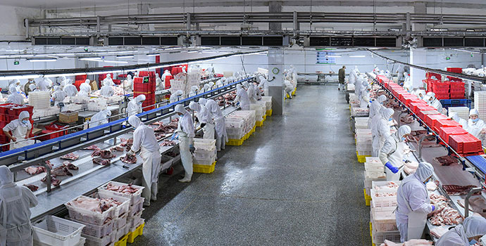 擁有完善的屠宰、分割流水線(xiàn)